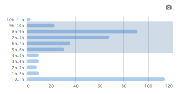 To remove outliers from the data, use a “histogram” widget. For example, if you know that you never slept less than 5 hours or more than 10 hours, you can filter on that range of duration values.