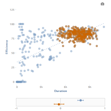 Once you have some data in Zenobase, you can investigate correlations. For example, does your sleep data (recorded manually, or through a service like Fitbit, Withings or BodyMedia) show a correlation between time in bed and sleep efficiency?