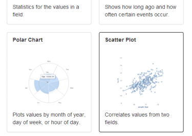 To configure a scatter plot, choose two fields to correlate, how the values of each field should be aggregated (average, sum, min or max), and at what interval (hour, day, month etc).