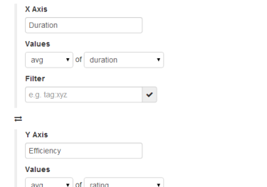 If correlating values from the same field, set a different filter for x and y, e.g. “tag:Gym” and “tag:Bakery”.