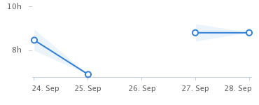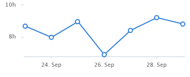 Being able to aggregate on the end timestamp is especially useful when looking at sleep data: Consider this plot of average sleep durations by day, based on the begin timestamp (which sometimes falls before, and sometimes after midnight):